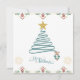 Celebrate the holidays with this refined square Christmas card featuring a minimalist ribbon-style tree topped with a golden star. Elegant blue script and festive accents of holly, ornaments, and golden snowflakes create a sophisticated seasonal greeting perfect for stylish celebrations.