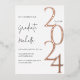 Modern rose gold graduation invitation with a white background. Featuring the graduating year in a chic rose gold foil.