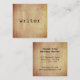 Minimalist, rustic square business cards for writers- Suitable for any writing-related profession including editors, proofreaders, composition teachers, authors, playwrights, etc. Front simply reads 'writer' in typewriter look lettering. Background is stained, old vintage parchment paper look. Back has matching, old paper background with personalised business information, including email and website in retro typewriter look. Add other social media if you desire. Text colours and/or styles may be changed. Note: All images are printed. Not actual parchment. Fill in the template with your custom business information. More professional business cards are available in our Zazzle.com/angela65 shop.