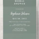 Budget minimalist and simple bridal shower. The design features a sage green background and white text.