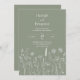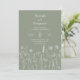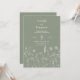 A minimalist sage green background with white line-art wildflowers, perfect for elegant modern wedding invitations.