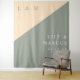 This sage green and cream minimalist, elegant, monogrammed wedding photo booth backdrop can be personalised with your information in modern typography. Designed by Thisisnotme©