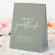 Minimalist Sage Green Modern Photo Guestbook Table Tent Sign. The word 'guestbook' is not editable. Can be used for weddings, bridal showers, baby showers, etc.