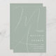 Minimalist Sage Green Script Monogram Wedding Invitation