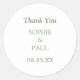 This elegant minimalist Thank You sticker is easy to personalise with the names of the couple and the date of the wedding, using the online personalisation template before ordering. The "Thank You" wording for the heading is also easy to personalise online before ordering, in case you wish to change it to different wording.