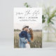 Modern and Elegant Handwritten Script Photo Save the Date Wedding Card. The save the date invitation card includes a chic and stylish typography with a simple and minimalist design on a white background that you can add your customised engagement photograph picture to.