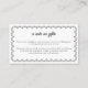 Designed to coordinate with our Scalloped Border Collection, this minimalist a note on gifts enclosure card features a classic design with a unique twist - the scalloped border is one of a kind, and will surely add a slight retro feel to this modern invitation. If you want to catch your guest's attention with this unique design, this suite is perfect for you. For more advanced customisation of this design, e.g. changing layout, font or text size please click the "CUSTOMIZE" button above. Please contact me for any questions!