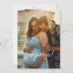 Minimalist Script 2-Photos Ultrasound Pregnancy. Announce your pregnancy to friends and family with this modern and simplistic pregnancy announcement card, designed with 'surprise!' in script lettering. Customise with a favourite maternity photo on the front, and your due date, baby name, and ultrasound photo on the back.