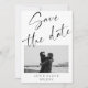 Announce your special day in modern simplicity with our Black and White Script Save the Date. This minimalist design features a classic script font that beautifully frames a cherished photo of the happy couple. The timeless monochrome palette adds a touch of sophistication to your wedding announcement. Customise the date and details to create a save the date that effortlessly captures your love story.