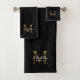 Minimalist Script Black Metallic Gold Monogram Bath Towel Set
