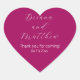 Simple minimalist script calligraphy magenta heart wedding favour stickers for your wedding reception, rehearsal dinner and bridal shower.