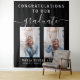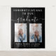 Celebrate the success of your graduate and throw a simple party with this minimalist script calligraphy two photo graduation tapestry backdrop in black background which you can hang or attach to your wall.