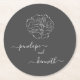 Personalised Minimalist Script Flower Black and White Wedding Round Paper Coaster