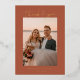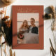 Minimalistic and elegant wedding thank you card featuring hand lettered script with a heart. You can add a photo on the front and back along with your message. The background colour is terracotta.