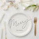 This minimalist and chic "merry" christmas/holiday paper plate features a cream white background with script letterings. Personalise it for your needs. You can find matching products at my store.