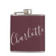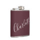 Minimalist Script Personalised Name Burgundy Hip Flask