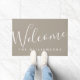 Minimalist Script Typography Name in Taupe Brown Welcome Doormat