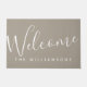 Minimalist Script Personalised Welcome Taupe Brown Doormat