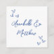 The back includes the bride and groom's names in the same elegant handwritten script, along with a pair of small, hand-drawn hearts for a sweet and personal touch that complements the serene blue design.