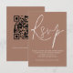 Minimalist Script QR Code Brown RSVP Wedding Card