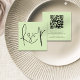 Minimalist Script QR Code Lime Cream Green Wedding RSVP Enclosure Card making it convenient for your guests to reply by scanning your QR code leading to your wedding website reply page. A MINI size 2.5" square to enclose with your invitations. On the front, RSVP is in an elegant set script taking Centre stage, and on the back, easily personalise the rest of the words to your own and enter your required website URL to automatically update the sample QR code to lead to your own chosen webpage. You can also change text and background colours if you wish via the customise further option to match your wedding colour theme. If you need any assistance with this please message me.