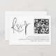 Minimalist Script QR Code Wedding RSVP enclosure making it convenient for your guests to reply by scanning your QR code leading to your wedding website. A MINI size to enclose with your invitations. RSVP is in a set handwritten style script and the rest of the text easily personalise to your own in black and white. Text and background Colours can be changed as required via the edit further button. Your QR code will be auromatically generated when you change the sample URL to your own website URL.