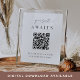 Make it easy for your wedding or event guests to find their seat with this QR code sign. "Your seat awaits" appears at the top, with brief instructions beneath. Enter the url for your seating assignments, and the QR code will update. Guests can scan the code to easily find their spot.