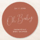 Minimalist Script terracotta Baby Shower day Round Paper Coaster
