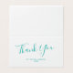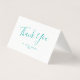 A simple wedding thank you card featuring the phrase "thank you" in teal hand lettered font, and your names and wedding date in modern sans serif font. The card is blank inside for your own hand written message.
