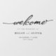 Create your own personalised wedding welcome window cling sign with elegant calligraphy script typography and modern minimal black and white design.