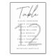 This chic and modern wedding seating chart table number card features a white background with script lettering in black. Personalise it for your needs. You can find matching products at my store.