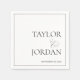 The names "Taylor and Jordan" are set in a timeless, high-contrast serif font, elegantly joined by a delicate, hand-lettered style ampersand. Your wedding or event date is perfectly positioned at the bottom for a clean, professional finish. These napkins are ideal for couples who appreciate understated luxury and a monochrome aesthetic.