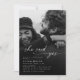 Black and white minimalist "she said yes" bridal shower photo invitation with black gradient overlay.