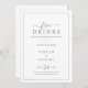 This minimalist silver free drinks save the date card is perfect for a simple wedding. The modern romantic design features classic silver grey and white typography paired with a rustic yet elegant calligraphy with vintage hand lettered style. Customisable in any colour. Keep the design simple and elegant, as is, or personalise it by adding your own graphics and artwork.