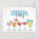 Cocktail time. Invite your friends and relatives over for cocktails with this cute whimsical Invitation postcard. With whimsical wine glasses, umbrellas, lemons, and limes. Great for Birthdays, Anniversaries, Office Parties, or any event.
