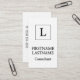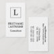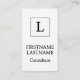 This simple, minimalist, and basic business card design could be used by a professional such as a consultant, executive, business thought leader, or corporate director. The initial letter, name, profession and contact details can be personalised.