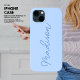 Create your own stylish but minimalist iPhone case and protect your phone in style! This case features a stylish large handwritten style script font in blue tone on a lighter blue background. Select from slim or tough style of iPhone case and your model iPhone easily from the drop down boxes below.