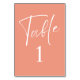 Minimalist simple and modern spring summer wedding table number cards is the perfect way to welcome your guests! This modern script calligraphy text table number features warm orange colour in the background that makes this wedding welcome sign perfect for modern spring and summer garden-themed weddings.
