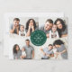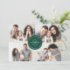 Modern holiday card featuring a four photo collage with a simple white snowflake in the middle inside of a green circle frame. Personalise the minimalist Christmas card by adding a custom greeting and your name. The card reverses to display a white snowflake pattern on a green background.