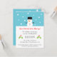 A modern and minimalist Christmas party invitation for friends and family! The invite comes with a little snowman that has a carrot nose and a black top hat. The snowman is sitting on a blue background with falling snow. Personalise easily with your party details in space provided with mistletoes as decorations.