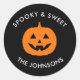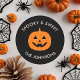 Add a spooky touch to your Halloween gifts and treat bags with this modern round label featuring a smiling pumpkin and your family name. Perfect for party favours, packaging, and seasonal surprises — simple, fun, and festive for all ages!