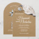 Add a touch of seaside elegance with this minimalist Starfish Beach Arch Wedding Invitation. The design features a starfish gem bride and groom beside sand-carved “Love” and the quote, “Where the waves meet the shore, our love lives forever,” set against golden sand with ocean waves. Names and wedding details are displayed in a clean, modern layout.