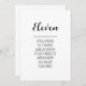 Order these minimalist table number seating chart cards to easily show your guests which table they are seated at. They come in multiple sizes with a standard size set at 5 x7. You can attach them to a mirror, string them to twine, place them in a frame, or any other creative way to display them at your celebration. Personlaize them with ease using the personalisation tool. Just replace the text with your guest's names. Enjoy!