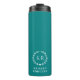Minimalist Teal Laurel Wreath Crest Monogram Thermal Tumbler