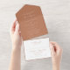 elegant and minimalist all-in-one wedding invitation, perfect for a rustic or bohemian themed wedding. Features beautiful calligraphy text on a terracotta background colour. The design is minimalistic, allowing the calligraphy text to stand out, and giving your guests a sneak peek of the elegance and simplicity of your wedding. The terracotta colour adds a touch of warmth and rustic charm, making these invitations perfect for a fall or outdoor wedding. It includes a tear-off RSVP card, making it easy for your guests to RSVP to your wedding. The RSVP card is designed to match the invitation and features the same calligraphy text and terracotta colour scheme. The invitations are customisable with your own wedding details and can be matched with other stationery items, such as thank you cards, to complete the look. These minimalist all-in-one wedding invitations with calligraphy text and terracotta background colour will make a lasting impression on your guests and set the tone for your special day. The convenience of having an RSVP card included will save you time and energy in tracking down responses from your guests.