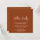 Modern square boho wedding invitation featuring a simple design with your names in an elegant script typography and your event details in a minimalist sans serif font. All design elements are in white over a terracotta / copper background. This chic wedding invitation works well for a fall / autumn wedding.