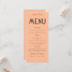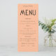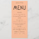 Minimalist Text Peach Wedding Menu card. Available digitally and printed. Easily personalise the text to your own details which includes alternatives for your vegan or vegetarian options. You can change if you wish to any colours of your choice to match your wedding theme.