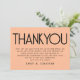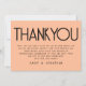Minimalist Text Peach Wedding Thank You Available digitally and printed. A simple fully customisable pretty peach typographical design to thank your guests. Replace the sample photo on the back with your own favourite. You can also change text and background colours if you wish via the customise further option to match your wedding colour theme.