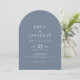 Minimalist Text QR Code Dusty Blue Arch Wedding Invitation