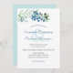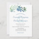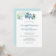 This minimalist botanical wedding invitation features sketch art branches, leaves, and blue and brown berries along the top. The card back matches a hue from the berries. Personalise the design with your wedding details in the template fields.